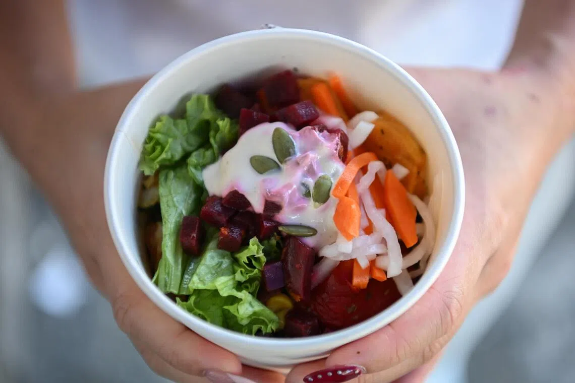A salad made from rescued vegetables and fruits by FRC volunteer Barbara Nicaud, 57.