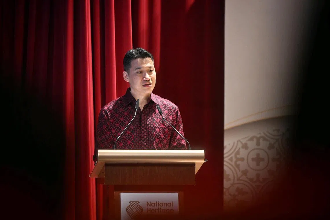 Acting Minister for Culture, Community and Youth David Neo delivering his speech at the inaugural Outstanding Youth in Intangible Cultural Heritage award ceremony on March 18.