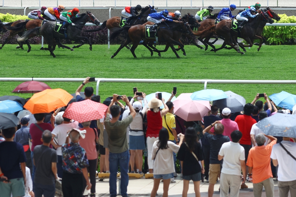 Spectators lined the track as races unfolded, with many using umbrellas and caps to shield themselves from the sun.