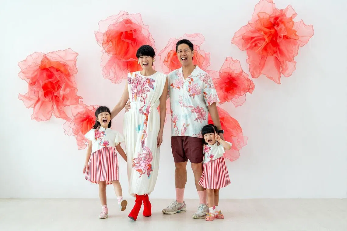 Actress-model Sheila Sim has partnered local fashion label Le Petit Society to introduce matching Chinese New Year outfits for the entire family, with designs for babies, children, mums and dads.