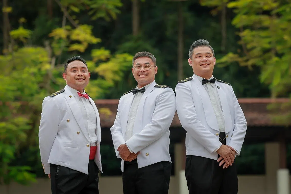 (From left) Military Expert 4 (ME4) (NS) Muhammad Arief Aditya, ME4 (NS) Mohamed Najid Mohamed Sultan and ME4 Ivan Or Min Jun.