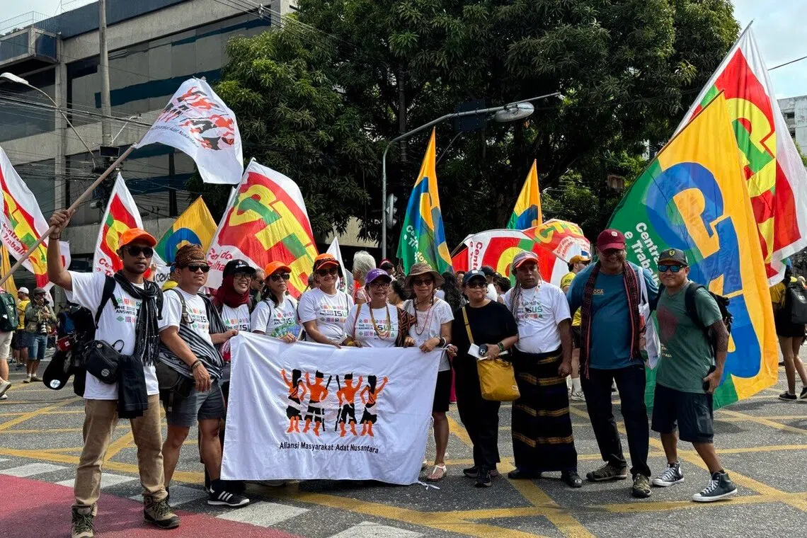 Demonstrators from Indonesia’s Indigenous Peoples Alliance of the Archipelago on Nov 15 in Belem.