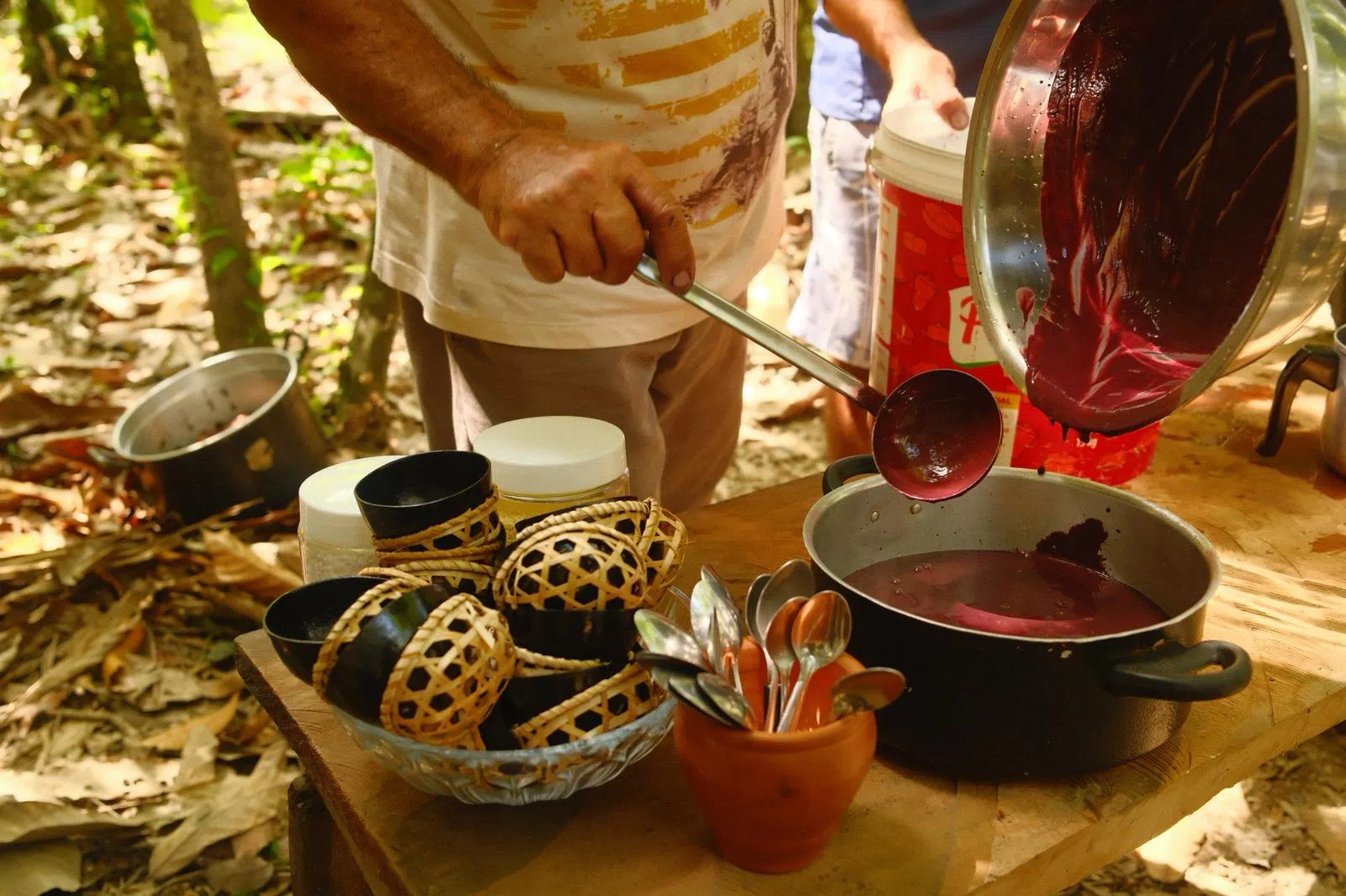 Freshly processed acai being prepared on Combu Island.