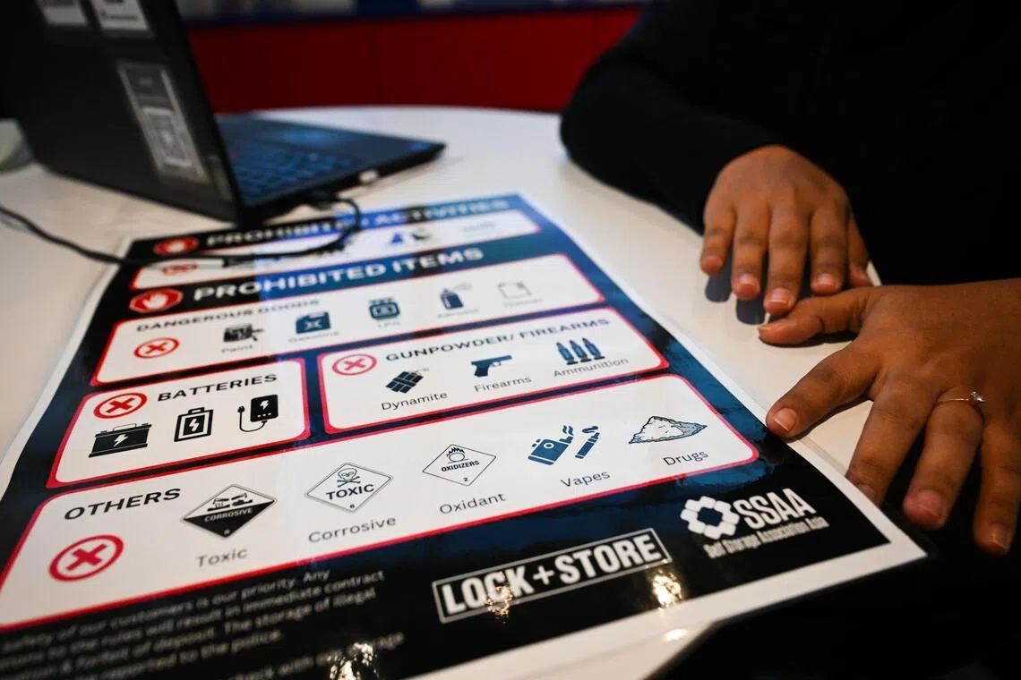 Clients must declare they do not store prohibited items, such as lithium batteries which pose a fire hazard, drugs, explosives and ammunition. If they breach this, they are immediately kicked out, with their deposit forfeited.