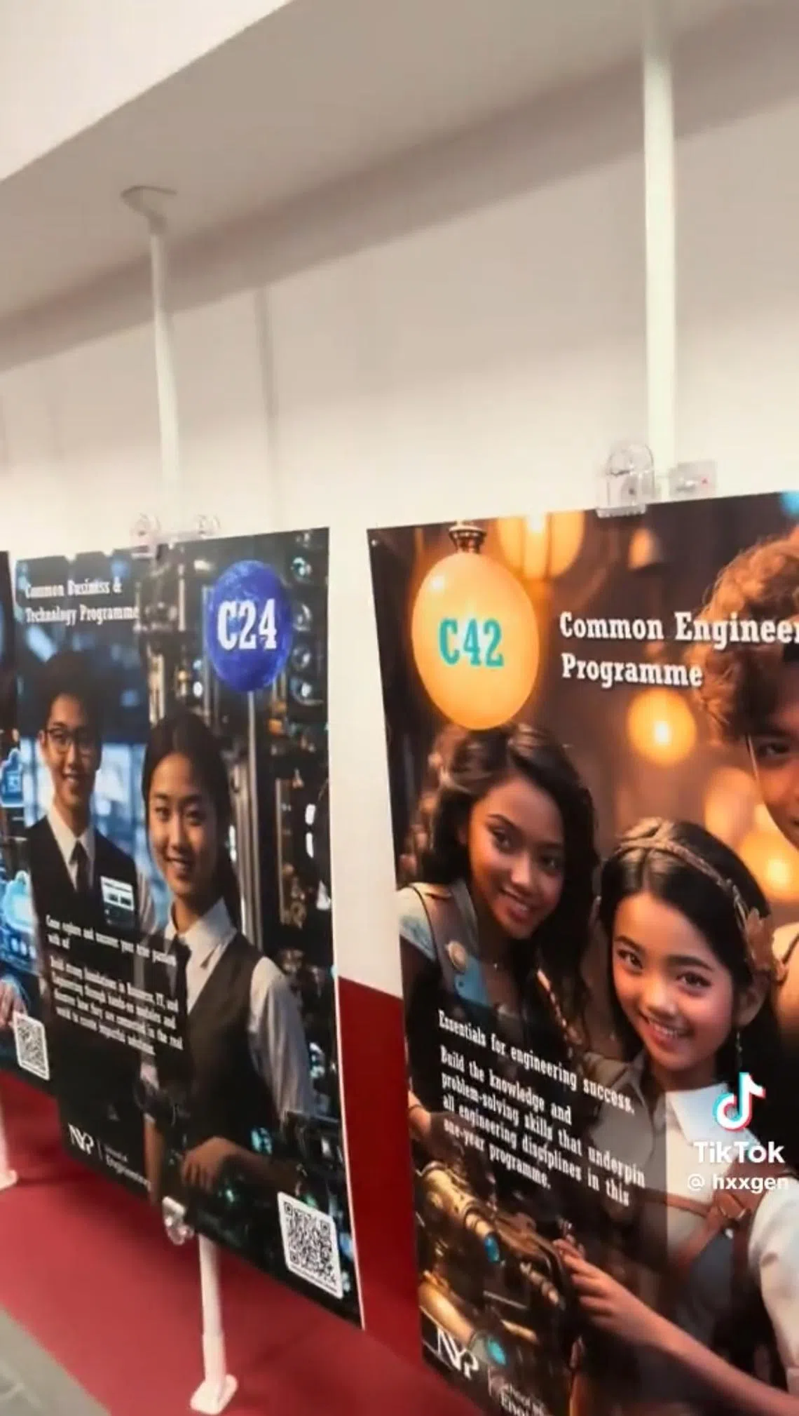 A screengrab of a TikTok video posted by user @hxxgen of allegedly AI-generated posters in Nanyang Polytechnic’s School of Engineering.