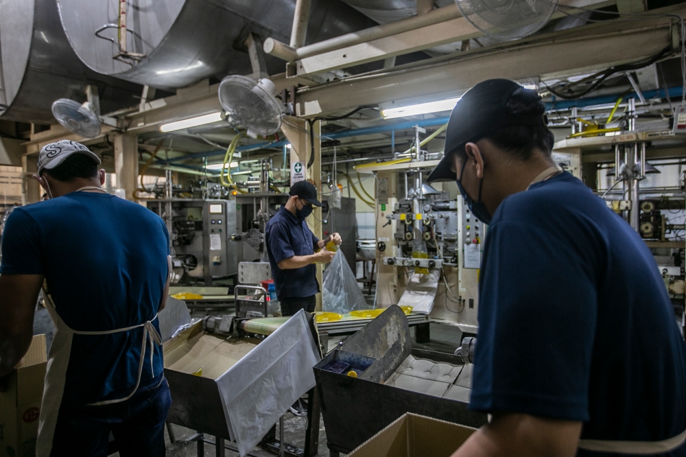 A general picture of the workers packing cooking oil. — Picture by Hari Anggara